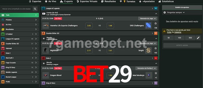 O bet29 oferece uma grande seleção de opções de apostas em e-sports com probabilidades competitivas